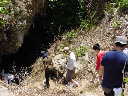 今年のフィールドワーク沖縄は歩くと決めていました。なぜ、歩くと決めていたかというと、今まで、移動はバスやタクシーなどを多く使っていたので、フィールドワークに重要な距離感や土地勘というものが頭に入っていなかったからです。その土地の歴史や文化などを知ろうとするとき、多くの場合、書籍や資料によって、情報を得ることが私たちはできます。しかし、その中に書いてある各土地にまつわる様々な情報は、その土地に元々存在しているその土地ならではのいろいろな要素から成り立っています。例えば、その時、アメリカ軍は、この町の南西部から侵入してきたと書いてあったとします。確かに、地図などを読み取る力がある程度ある人は、その地形から、おおよその理由が推察できるとは思います。でも、6月の沖縄の気候はどうであったか、こうした勾配の所を数10キログラムの荷物を持って移動したときの疲労感はどうであったのかなどまでシュミレーションし、南西から侵入してきた理由を考えることができる人はそう多くはないと思います。歴史的出来事があったときに近い環境で、実証実験をしてみる。そこから新たな疑問や仮説が生まれるてくると思うわけです。そんな理由で今年は、少し汗をかいてみようと思ったのでした。 【第1日目-1】 いつもながら、梅雨時の神奈川から、同じ梅雨時とは言え、もう梅雨明け近くの沖縄に来るとその温度差にびっくりします。飛行機を降りると湿気を帯びた熱い風が頬を撫でます。「これが沖縄だ」と感じる瞬間です。この時期に沖縄に来るとまず気にかかることは、今年の雨の量です。なぜ雨の量が気になるかというと、島国である沖縄はその飲料水の多くを北部に降る天水でまかなっているからです。北部のダムがこの時期の雨によって満水にならないとこの後の夏を乗り切るのはたいへんなことになります。沖縄の人たちにとって、水は貴重で、こうした生活用水の他に沖縄の基幹産業である観光業にも影響を及ぼします。水不足では、リゾートホテルも形無しになってしまうからです。今年も私たちが訪れる直前に降った雨によってどうやら貯水率が60%を越え、夜間の出水制限は回避されたとのことでした。そして、今年もう一つ気になっていたことは、今国会で審議をされている有事関連法案に対する沖縄の人たちの反応です。昨年末は、アメリカでのテロ事件の影響を受け、沖縄の観光が大きな打撃を受けました。これも沖縄に米軍基地があるが由の影響です。このことは、逆の見方をすれば、ヤマトの人間は、米軍基地があることはその場所の安全保障にはならないということをよくわかっているということの証明です。つまり、わかっていながら、その危険の種を沖縄という場所の押しつけているということになると思います。もし、米軍基地が日本の安全保障を担っていてくれているのだとすれば、有事に沖縄ほど安全な場所はないからです。何ていっても日本国内にある米軍基地の70%があるわけですから鬼に金棒です。 とともかく、初日の本日は、明日からの活動に備えて準備をすることにしました。宿に荷を置き、昼食をとりつつ、歩くのに必要な資料やら不足していた道具やらを調達しに沖縄のメインストリートである那覇国際通り方面へと向かいました。まだ、梅雨が明けていないせいか、いつもであれば観光客でいっぱいの国際通りもあまり人がいず、スイスイと歩くことができました。私が最初の向かったのは、国際通り中程にある平和通りです。この通りの300mほど入った左側に何屋といいましょうか。雑貨屋というか、金物屋というか、日用雑貨品を取りそろえた昔風スーパーがあります。ここには、沖縄ならでは昔風のものから現在のものまで揃っているので沖縄で必要な生活用品を買うためにいつも立ち寄ります。いろいろあるコーナーの中で、今回は関係ないのですが、気に入っているのはお鍋のコーナーです。そこには、沖縄ならではのお鍋である油鍋が、大小取りそろえてあり、その不思議なフォルムと材質は、何度見ても飽きません。そこでちょこっと消耗品を購入し、さらに平和通りの奥地へと足を踏み入れました。途中に何軒かあるバック屋さんが目当てです。暑い沖縄で歩くとなるとバックは重要です。一般に考えれば、歩くわけですからデイバックのようなものがよいと考えられますが、背中にフィットしてしまう背負うタイプのバックは今一です。汗で背中がびっしょりになってしまうからです。かといって、ショルダーのようなバックだと片方の肩だけに重さがかかってしまい歩きづらいことになってしまいます。いくつかのお店を回って最後、オバーが一人でやっている間口一間ほどの小さな店に入ったところ、理想に近いバックを発見しました。なぜかカナダのメーカーです。一見、ただの袋ですが、うしろにルーズな背負いひもがついています。ルーズなので、背負っても背中にはフィットしませ