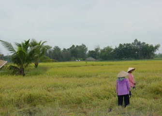 【旅日記】 クチのトンネルを見て、かなり体力を消費したので、今、 ホーチミン市で流行っているヤギ鍋を食べに屋台へ、ヤ ギ鍋といい、屋台といいまさにディープなベトナムの夜 です。暑さも吹っ飛ぶパワフルな夜でした。 次の日は、朝も早から車に乗って、メコンデルタ方面へ と出かけました。メコン河は、インドシナ最大の河で、 全長約4500km、流域面積約81万平方km、チベ ット高原に源を発し、中国、ミャンマー、ラオス、タイ、 カンボジアの国々を流れ、最後にベトナムを通過する。 最後とはいうものの河口に位置するベトナムでは、毎年 のように氾濫をし、その河口の位置を変えてきた。そん な暴れん坊のメコンのことをベトナムの人たちは、9つ の龍の頭といい、クーロンと呼ぶ。 しかし、そんな暴れん坊のクーロンも暴れた後に残して いく残土は、豊富な栄養分を含み、農耕、特に米栽培の 土壌として、ベトナムの人たちに多大な恩恵を与えてき た。メコン流域は、世界でも最大級の米作地帯である。 そんな肥沃なメコンデルタに目をつけたフランスは、デ ルタ地帯に無数の運河を掘った。今回のデルタの旅は、 そんな運河を巡る旅でもある。 ホーチミン市を出ること小1時間も車は走っただろうか、 いつしか回りの風景も、二期作の刈り入れが近い田園風