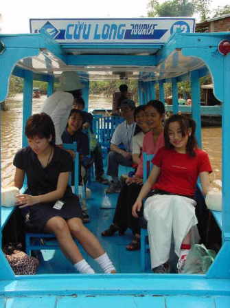 2000年度(2001年)フィールドワークベトナム 東京成田から、ひと飛び。 ということで、夜の気温が26度の熱帯であるここベト ナム南部の都市ホーチミン(旧サイゴン)へとやってき ました。思ったより暑くはなく、ちょうどよい暑さで、 冬から逃げてきた私にとってはちょうどよい感じです。 【旅日記】 前日の夜遅くにホーチミンに着きました。 今年は、成田空港からの直行便で、一気にホーチミンタ ンソンニャット空港へと乗り入れてきました。成田から 空路約6時間というところです。現地ベトナムとは、2 時間の時差がありますので、形的には、4時間の旅にな り、その日のうちに着きます。感覚的には国内旅行のよ うな感覚におちいります。 1年ぶりに訪問をした、タンソンニャット空港は、改築 がされ、とても広くなり飛行機がターミナルビルに直接 乗り付けられるようになっていました。昔は、飛行機の 扉を開けると一気に流れこんできたベトナム特有の熱気 とベトナムスメルは、空港の玄関を出るまでお預けとな りました。 それでも、空港の空気を伝わってくる感じは、日本でい うと、石垣島や与那国島の空港のそれ似ています。そう いう意味でも沖縄は、より東南アジアに近い地域である ということがよくわかります。 外国に降り立ったら最初にすることは、入国審査です。 空港が改築されたので、今までの倍近くある入国審査ゲ ートは、窓口も多くなり、少々の時間で自分の番になり ました。いつもながら、社会主義の国らしく、きちんと 制服を着込んだ係官は、きびしい表情で、審査をしてい ます。ヨーロッパに行ったときもちょこっと書きました が、入国審査官の表情は、国によっていろいろです。ド イツなどの場合は、非常にフレンドリーですし、ポーラ ンドの場合は、やはり旧社会主義国らしく、厳しい感じ です。 こうした入国審査のときの共通したことがあります。そ の審査官が、フレンドリーであれ、厳しい顔をしている 人であれ、審査のときに一言でよいのですが、入国の国 の言葉で、「こんにちは」と声をかける、必ずニコっと してくれます。こんなときほど、挨拶をすることの大事 さがわかると同時に、多くの国の人が、自分の国の言葉 に誇りと親しみを持っていることに気が付かされます。 ここベトナムでも例外なく、ベトナム語で、「シン・チ ャオ・アイン」と声をかけると急ににこやかな顔になり、 日本人なのにベトナム語の挨拶を知っているのかという 顔つきになります。そして、そのあとに、「気をつけて」 などと声をかけてくれたりします。そこで、すかさず、 「シン・カムオン」とお礼を言うと、短い時間ですが、 今まで、あった緊張感が和らぎます。 入国審査をすませ、荷物を取り、いざ街へと足を踏み出 します。ここ数年、現地でのセッティングをお願いして いる旅行社の人が迎えに来てくれています。今年もなつ かしい顔が来てくれていました。毎年、訪問をしている と知らず、知らずのうちにこうした親しい関係ができて きます。こうして少しずつ、少しずつ相手の国のことを 知っていくわけです。他の旅行者を各ホテルに降ろし、 安い宿を指定している私たちは、最後の下車になりまし た。安いと言っても様々な旅を経験している私たちにと っては、十分に高級な部類に入ります。そのホテルは、 宿泊費も安く、サービスのよく、どこへ行くにも交通の 便のよい所にあるので気に行っています。 ホテルのロビーに入ると、深夜にも関わらず、さっとボ ーイの人たちが荷物を取りに来てくれます。他の国やホ テルだと、おそらく、やれチップだ安全対策だで、疲れ ることこのうえないのですが、私たちの顔を覚えてくれ ている彼らは、お久しぶりでした。お元気でしたか?と 片言の日本語で、てきぱきとチェックインを済ませてく れます。チップなども基本的にはいらないのもうれしい です。 そんなに長い旅ではなかったのですが、気温の変化に体 がついてこず、早めにベットへともぐりこんだのでした。 2月19日、二日目の今日は、朝は車のクラックション や体操の子どもたちの声に起こされ、ホテルの最上階に あるレストランで朝食を取りました。豊富な食べものは、 私の場合、自分の家にいるより数段快適です。朝から十 分に栄養をとり、午前中は、いざ,語学研修です。ホー チミン市の中にあるホンバン大学というところで、特設 クラスを作ってもらい簡単なベトナム語会話の講座をお 願いしています。